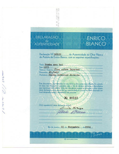 Obra acompanha certificado emitido pelo projeto do artista, registrado sob o nº 00522.