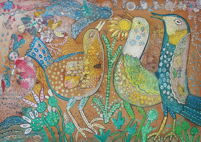 Figura Feminina com pássaros