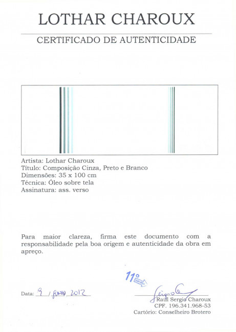Acompanha certificado emitido por Sérgio Charoux, filho do artista.