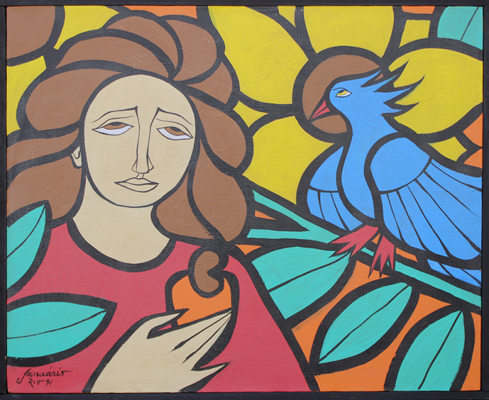 Figura feminina com pássaro azul -Sebastião Januário