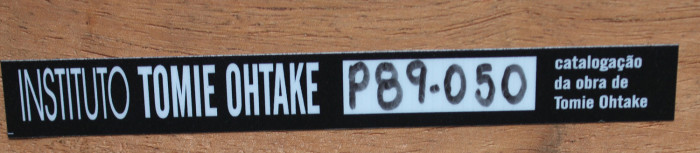 Apresenta certificado emitido pelo Instituto Tomie Ohtake. Obra catalogada sob o n° P089-050, com selo do Instituto Tomie Ohtake no verso.
