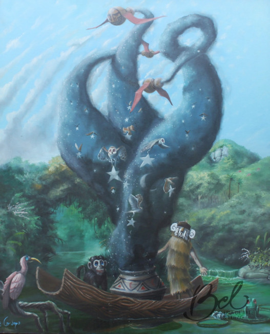A inspiração do seu trabalho origina-se de paisagens bucólicas, histórias e lendas brasileiras.